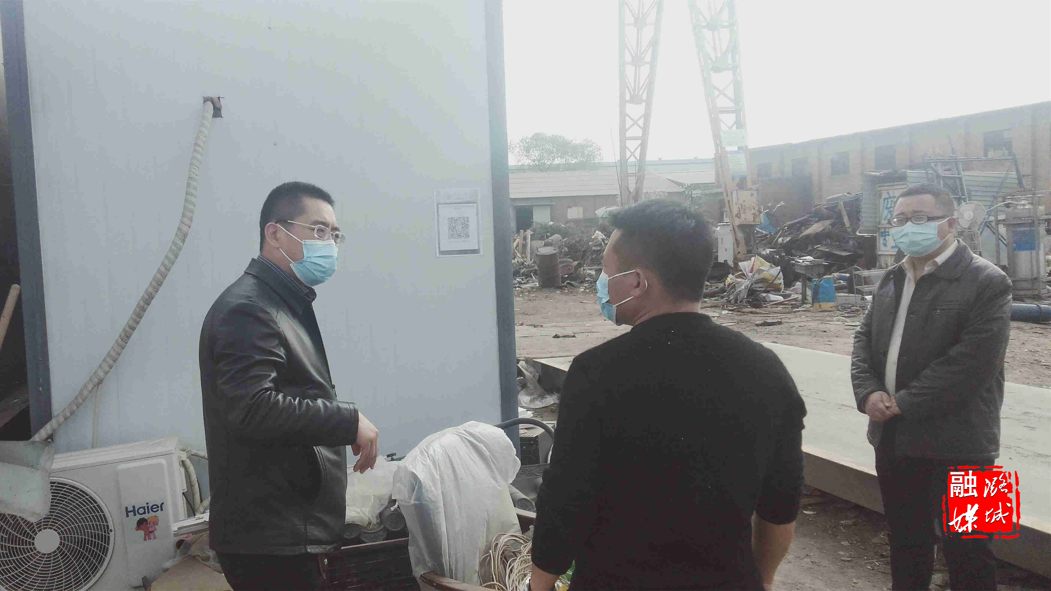 ▲成家川街道工作人员到企业督查疫情防控工作。