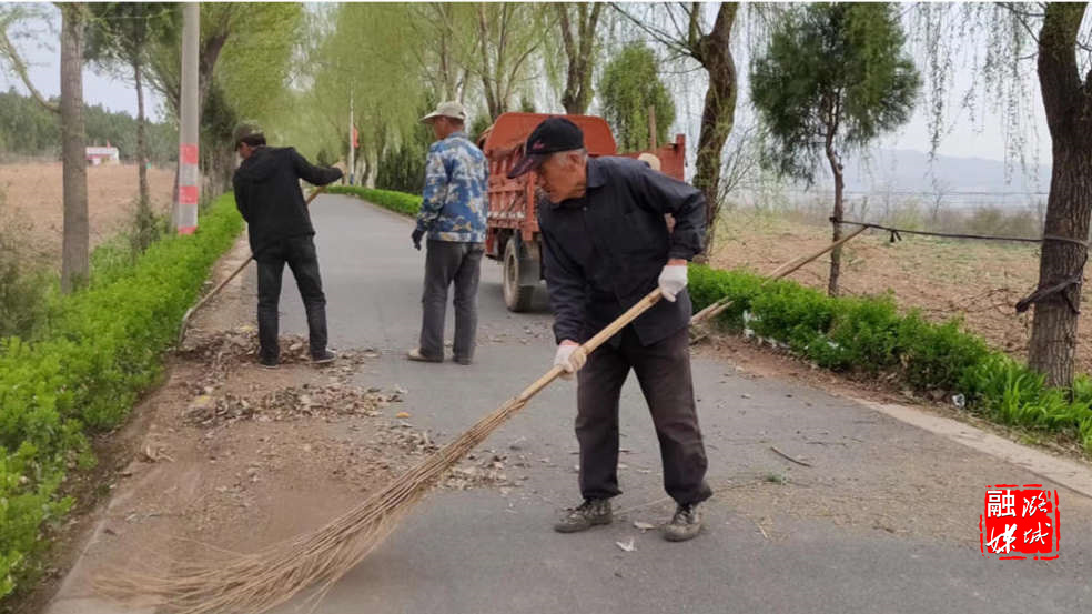 ★4月9日,成家川街道各村组织人员清扫村内道路,修剪景观树。