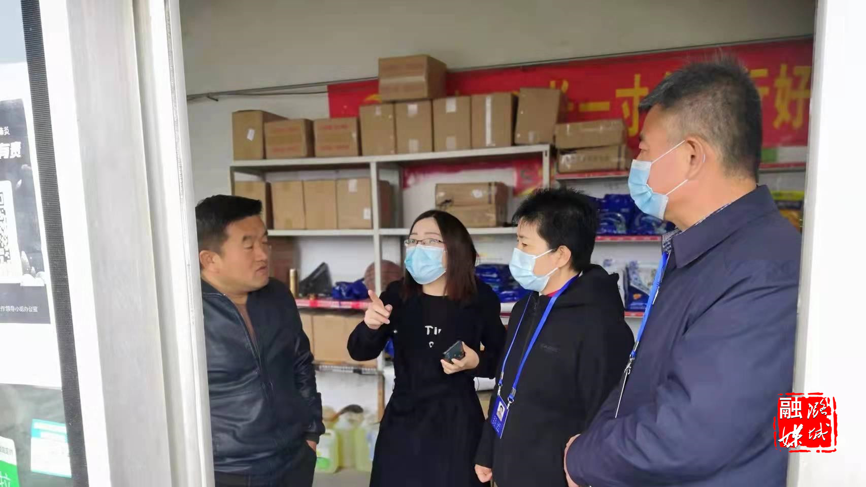 ▲区疫情防控督导组到成家川街道三井村督查快递从业人员管控与场所码验码情况。