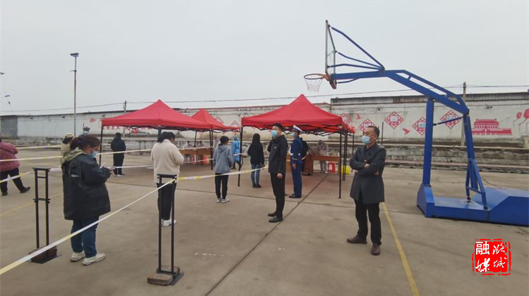 ▲成家川街道相关负责人到天脊俱乐部临时采样点现场指导核酸采样工作。