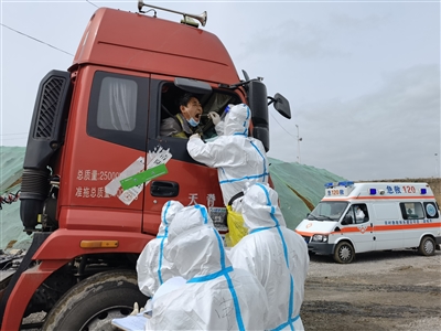 “您好,张大嘴巴,连续发出啊啊的声音”,讲话的是潞城区人民医院急诊科的护士申天哲,他正在潞城东高速路口对进出车辆的驾驶人员进行核酸检测,记者见到他时,已是凌晨,他告诉记者,他的上班时间是晚上8点到第二天早8点,连续要在这里工作一周甚至更长时间。