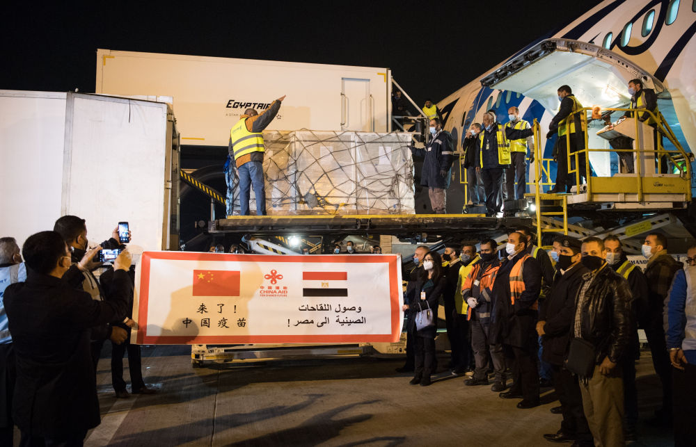 2021年2月23日,中国援助埃及的首批新冠疫苗抵达埃及开罗国际机场。新华社记者 邬惠我 摄