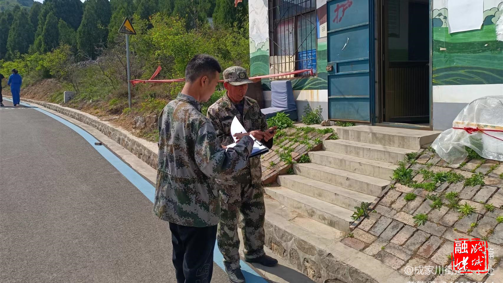 ▲成家川街道相关负责人到西辿、米家等村检查护林防火、卫生整治、“清化收”等工作。