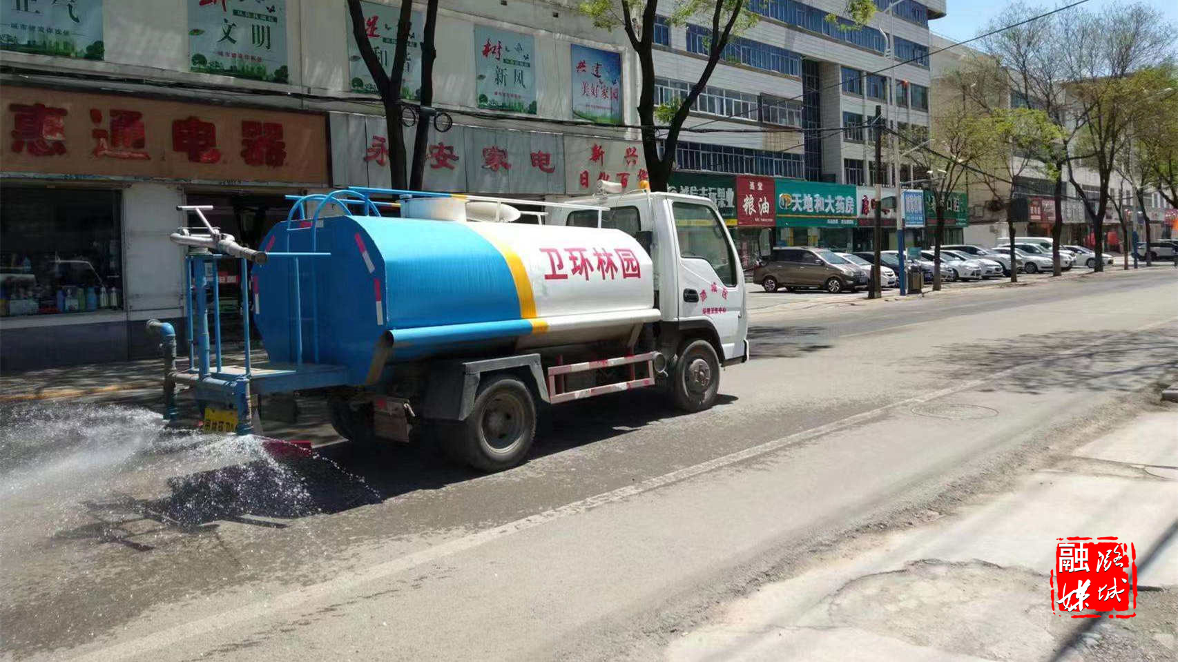▲区园林环卫中心组织工作人员对东华路、学府街、北华街、四中校园国控点点位周边以及长治绕城高速潞城东出口周边路段进行洒水,确保全天路面湿润,切实减少道路扬尘污染,有效改善城区空气质量。