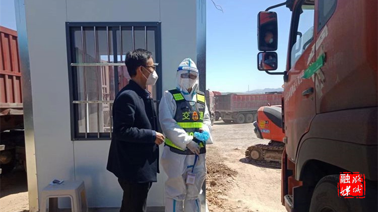 ▲区交通局运输局负责人在高速路口停车场检查疫情防控工作。