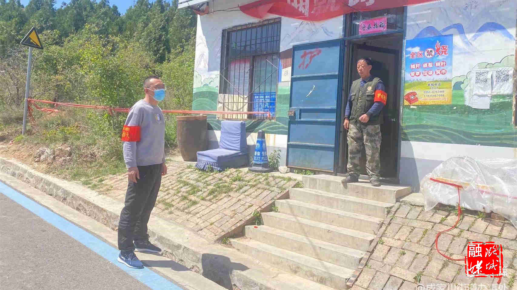 ▲5月4日,成家川街道工作人员在米家、李家村瞭望哨检查护林防火工作。
