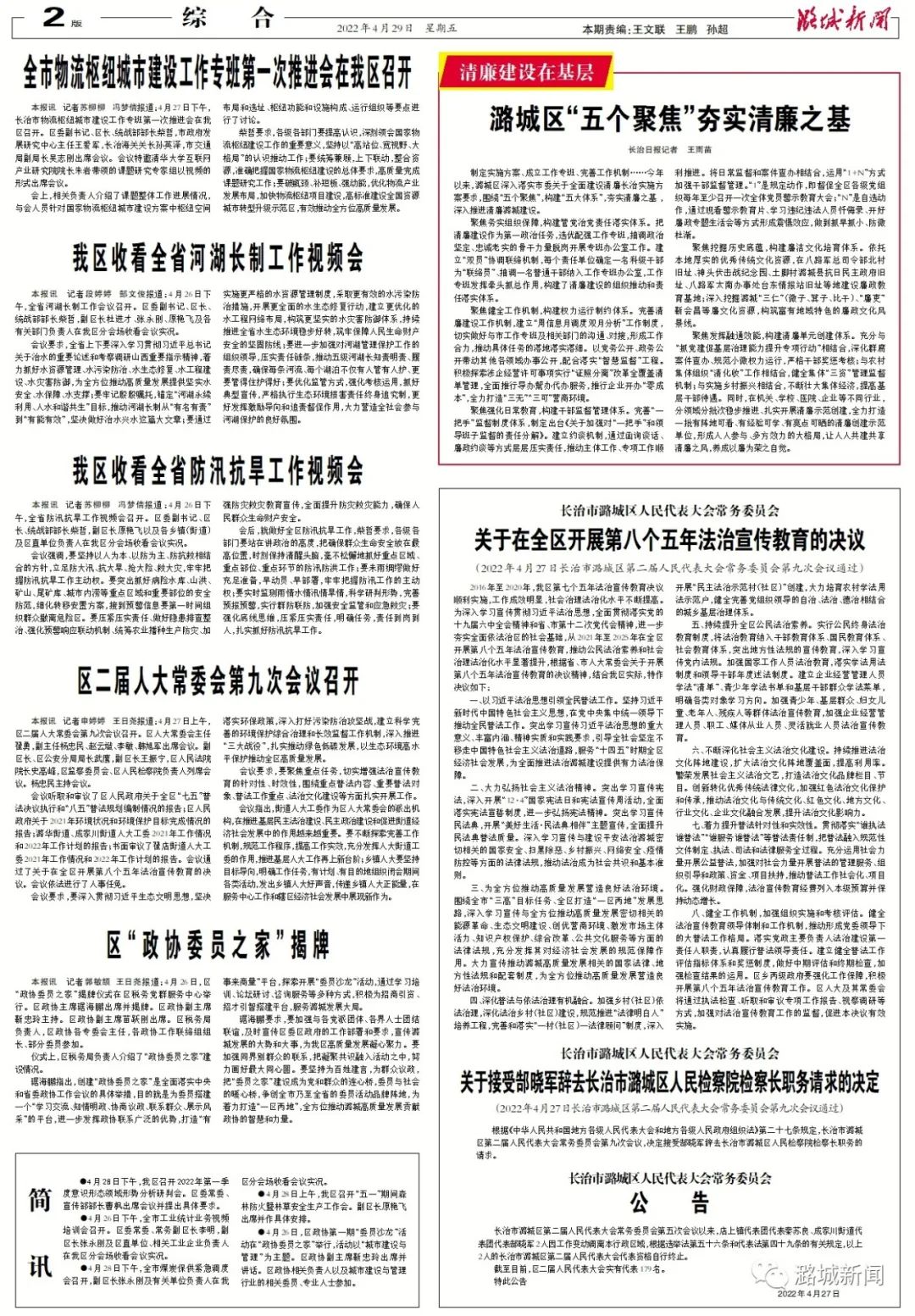 【潞城新闻】数字报2022年4月29日