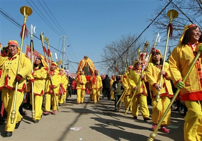 还有扛妆、皇杠、高跷、秧歌、旱船、竹马、舞蹈等活动,倾村出动,人人参与。其中最有名的是扛妆。