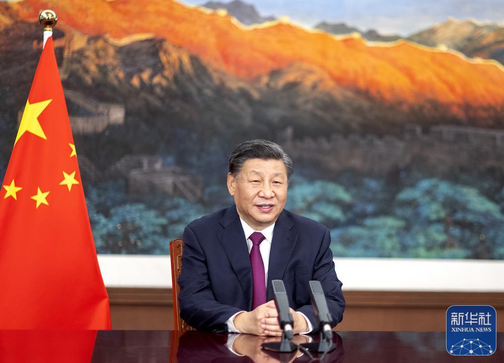 5月18日,国家主席习近平在庆祝中国国际贸易促进委员会建会70周年大会暨全球贸易投资促进峰会上发表视频致辞。新华社记者 殷博古 摄