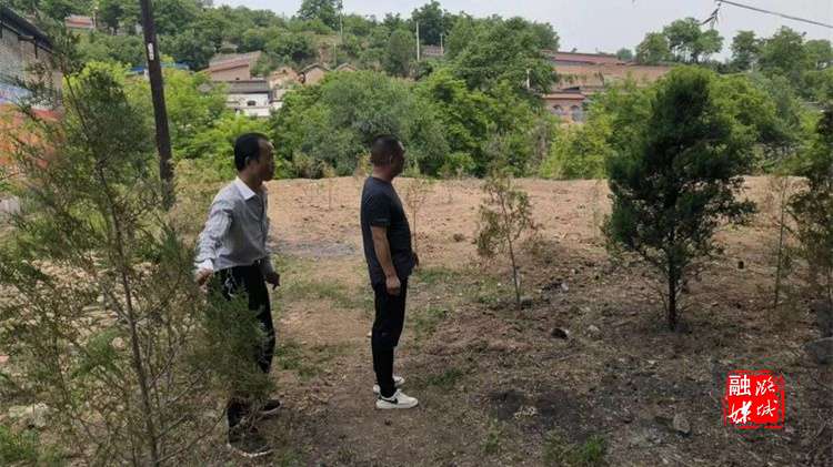 ▲微子镇工作人员实地查看G207沿线卫生整治后的新增空地绿化情况。
