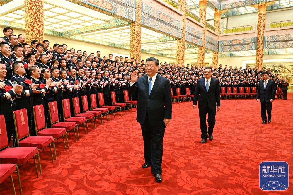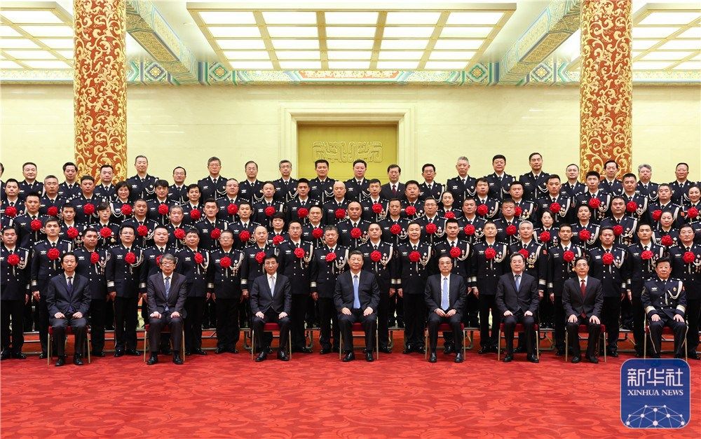 5月25日,党和国家领导人习近平、李克强、王沪宁等在北京人民大会堂会见全国公安系统英雄模范立功集体表彰大会代表。新华社记者 李学仁 摄