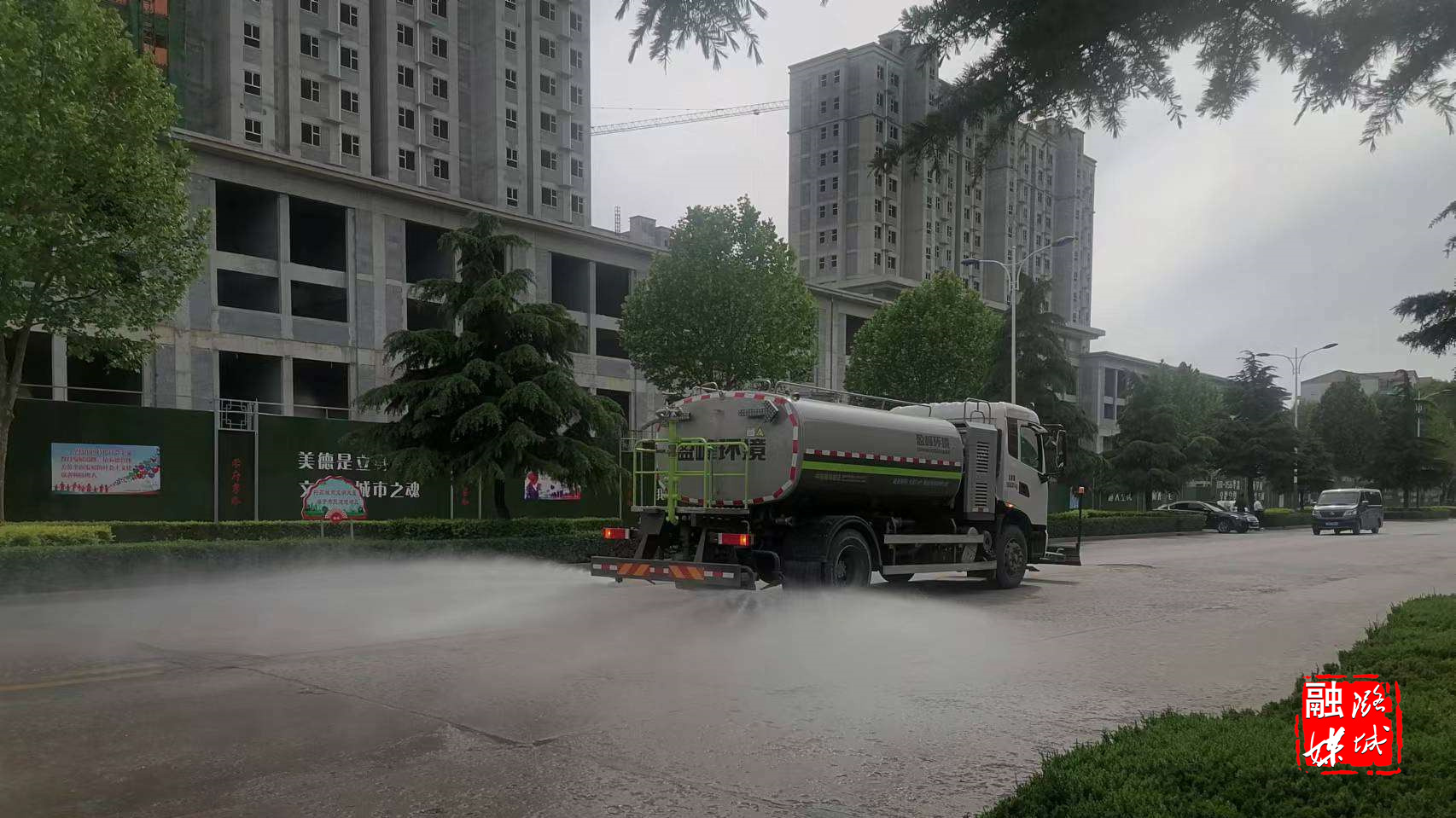 ▲区园林环卫中心出动机扫车、洒水车等特种作业车辆10余辆,对全城区域进行机械化清扫。