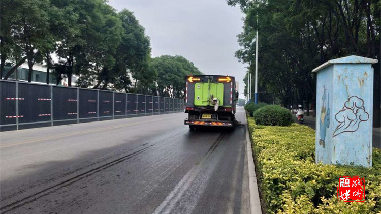 ▲区园林环卫中心出动机扫车、洒水车等特种作业对建成区道路进行机械化清扫保洁。