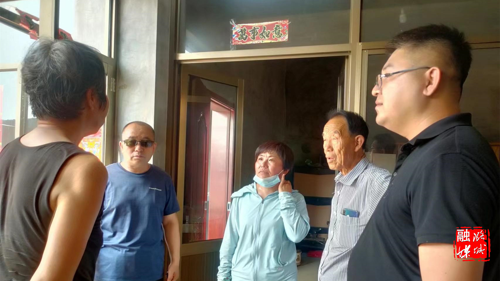 ▲成家川街道相关负责人入户督导环境卫生整治工作。