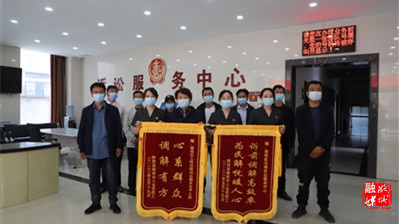诉前调解细致贴心,一站式服务高效便捷。“我们都很满意,真的是为我们农民工办了一件大实事、大好事。”石某某工友冯某一边感谢,一边拿出了来自潞城区人民法院出具的民事调解书,上面清楚记录着整个调解结果。原来,在援助中心的律师任建民、米琳霞帮助下很快形成文书起诉到了区人民法院受理。法院接到案件后,考虑到务工人员都来自外地,目前回乡意愿强烈且都希望得到快速解决,于是便开通“绿色通道”直接进入了诉前调解,加快效率的同时提供一站式服务。“当天下午我们就联系到原告和被告来到法院调解室,经过数小时耐心调解,双方最终达成一致意见,并且在现场签收了书面的民事调解书。”区人民法院立案庭(诉讼服务中心)庭长高燕向记者还原了当时场景。“这是送给你们的两面锦旗,是我们大家共同的心意,感谢你们的倾力付出,接下来执行工作还得继续麻烦到你们……”说话间,8位民工再向诉讼服务中心和调解员送上了两面锦旗。