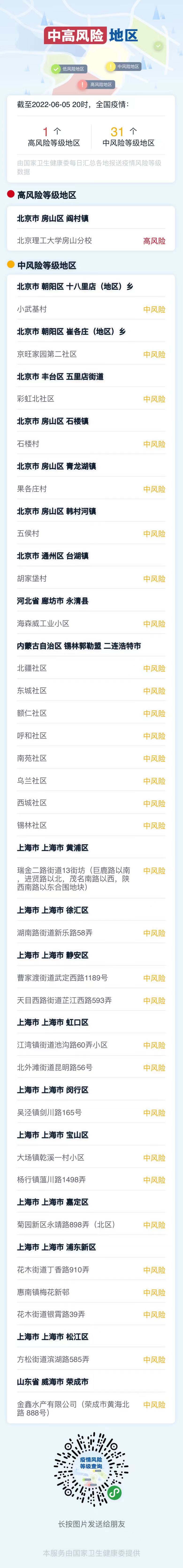 中高风险地区提示