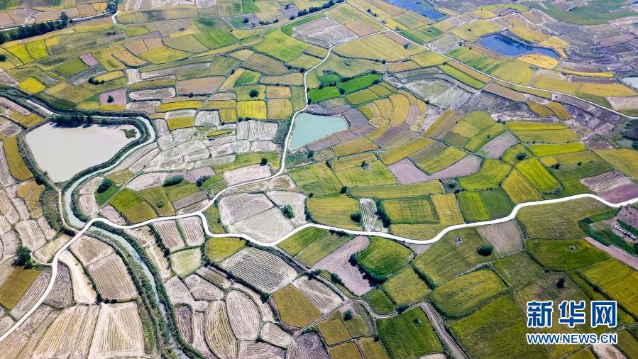 安徽省滁州市凤阳小岗村的田野景象(2018年9月27日摄,无人机照片)。新华社记者 张端 摄