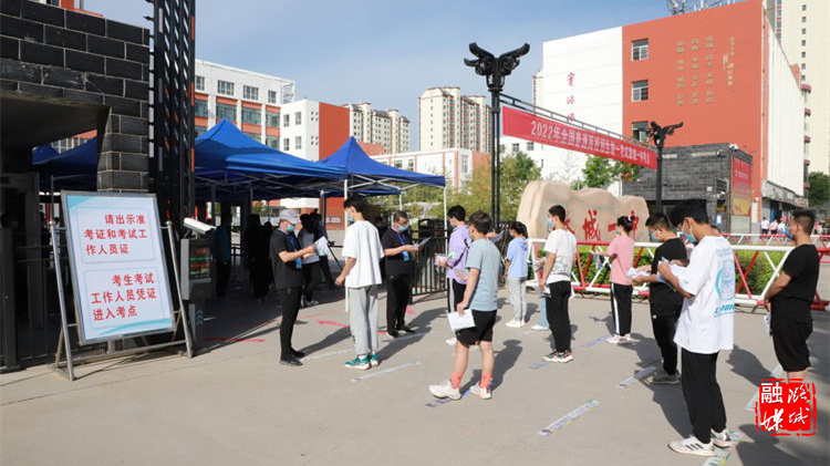 早上八时,在潞城一中考点,不少考生已经在校门口等候,入场时间一到,大家依次拿着手里“凭证”,经过工作人员的体温检测、安检、身份识别后进入考点。
