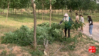 ★6月13日,区园林环卫中心组织人员处理折断树枝及倒伏树木,排除安全隐患,确保道路畅通和市民出行安全。