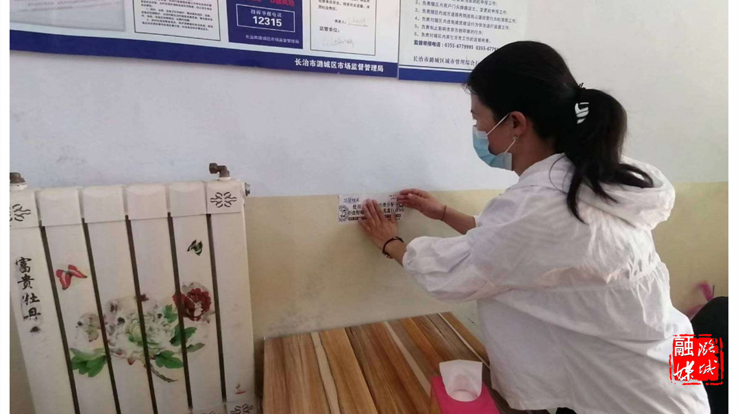 ★6月14日,区市场监管局工作人员在部分餐饮门店张贴文明城市建设温馨提示。