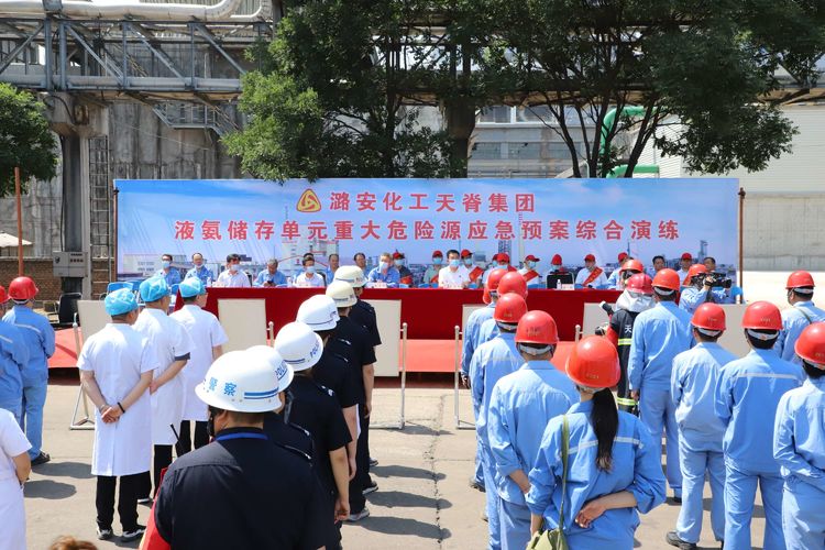 随后,段尧刚一行还实地观摩了潞安化工天脊集团液氨储存单元重大危险源应急预案综合演练活动。本次演练模拟一辆液氨槽车在2000#卸氨站台卸车作业过程中,液氨过滤器上法兰突发泄漏,卸车人员第一时间将现场情况上报,相关人员按照职责,逐级启动应急预案,采取积极、科学、有效的应急处置措施,圆满完成了应急处置任务。