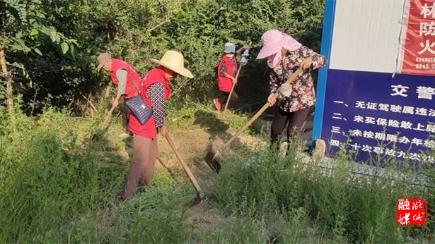 ▲微子镇各村对路边杂草进行清理,持续推进卫生整治工作。