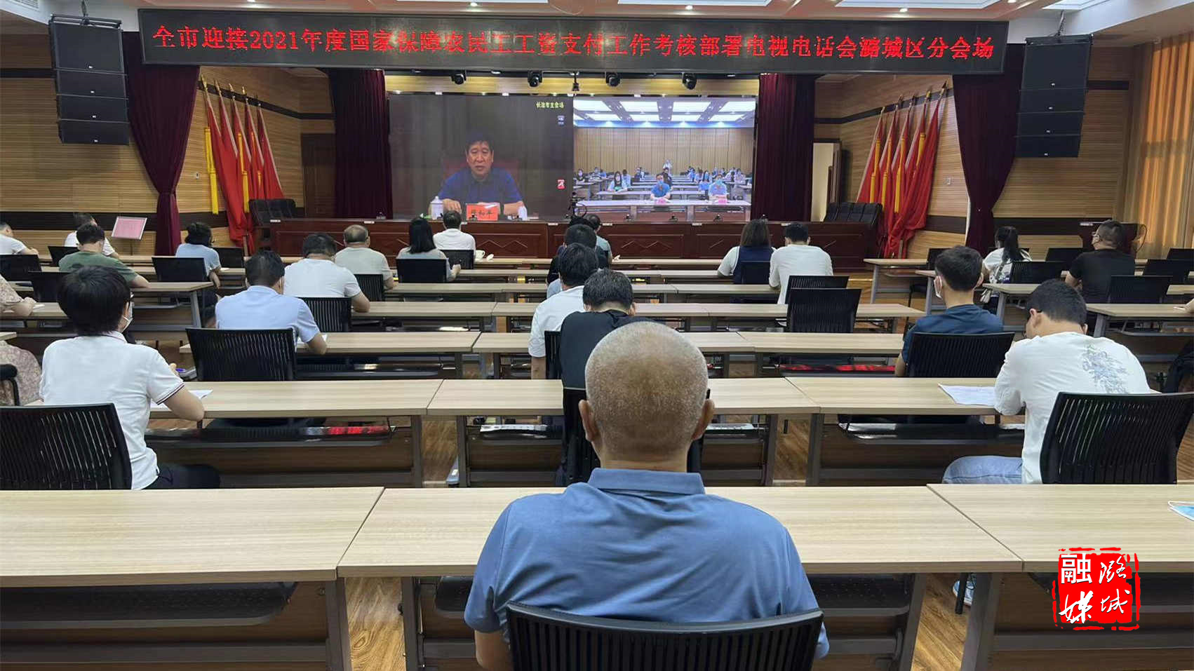 ★6月20日,全市迎接2021年度国家保障农民工工资支付工作考核部署会议召开。区政府党组成员王振华及各相关单位分管负责人在我区分会场收听收看会议实况。