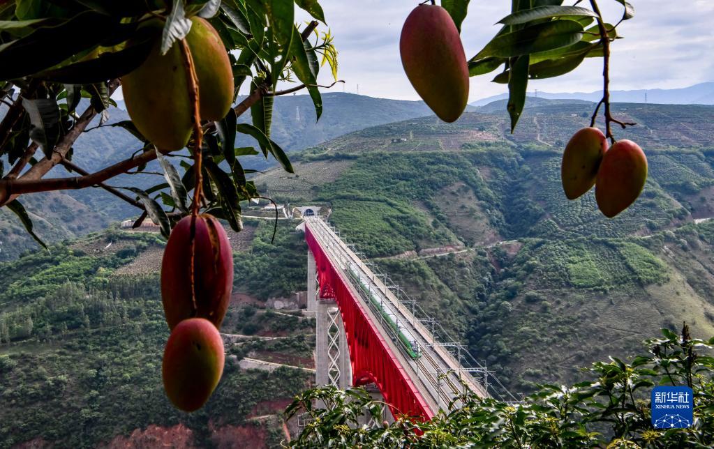 复兴号列车通过中老铁路元江特大桥(6月1日摄)。新华社记者 江文耀 摄