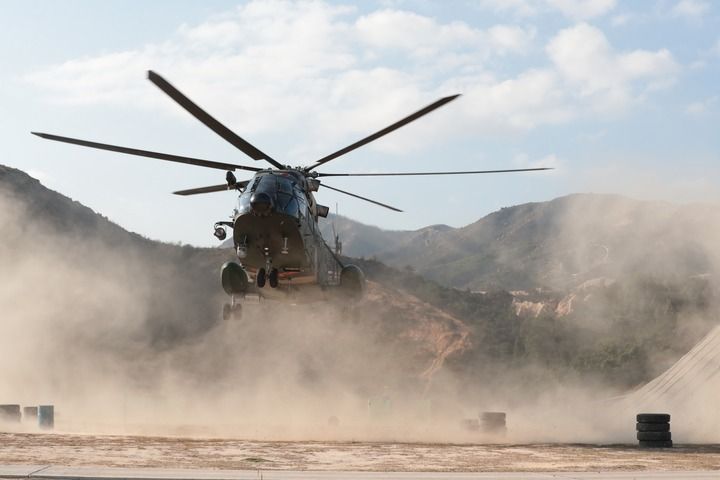 ↑驻香港部队组织海空联合巡逻任务,直升机抵达预定位置(2019年2月14日摄)。新华社发(易定 摄)