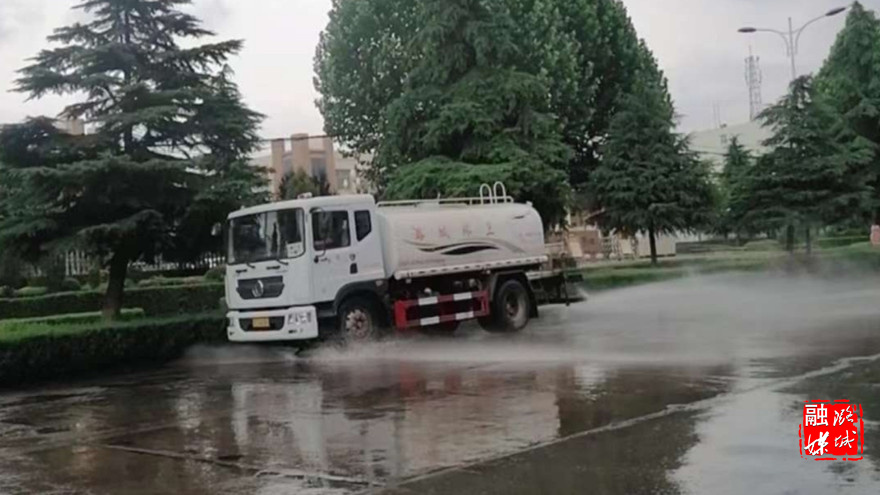 ▲区园林环卫中心开展“道路大清洗"活动,对城区主次干道进行冲洗清洁。