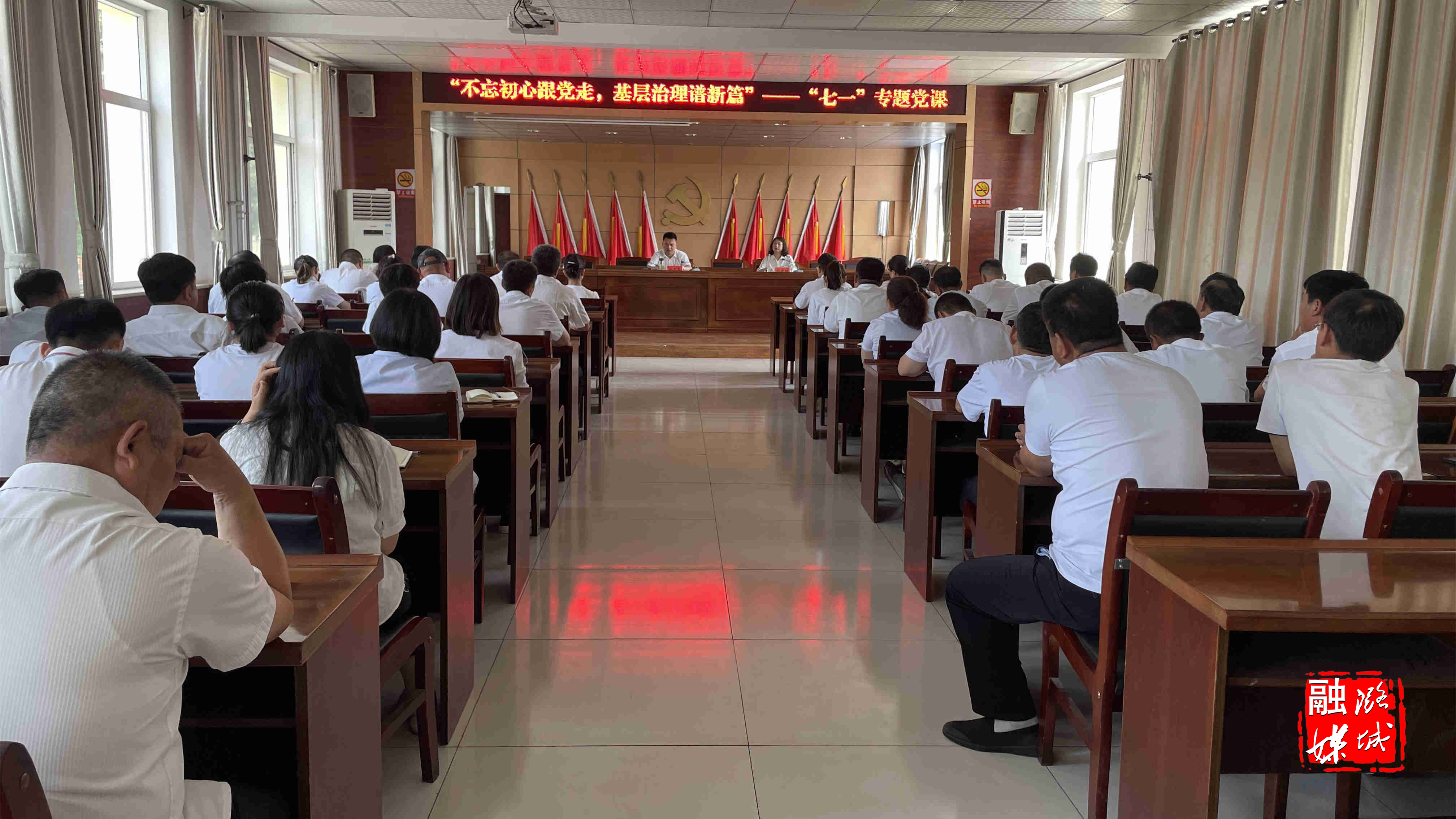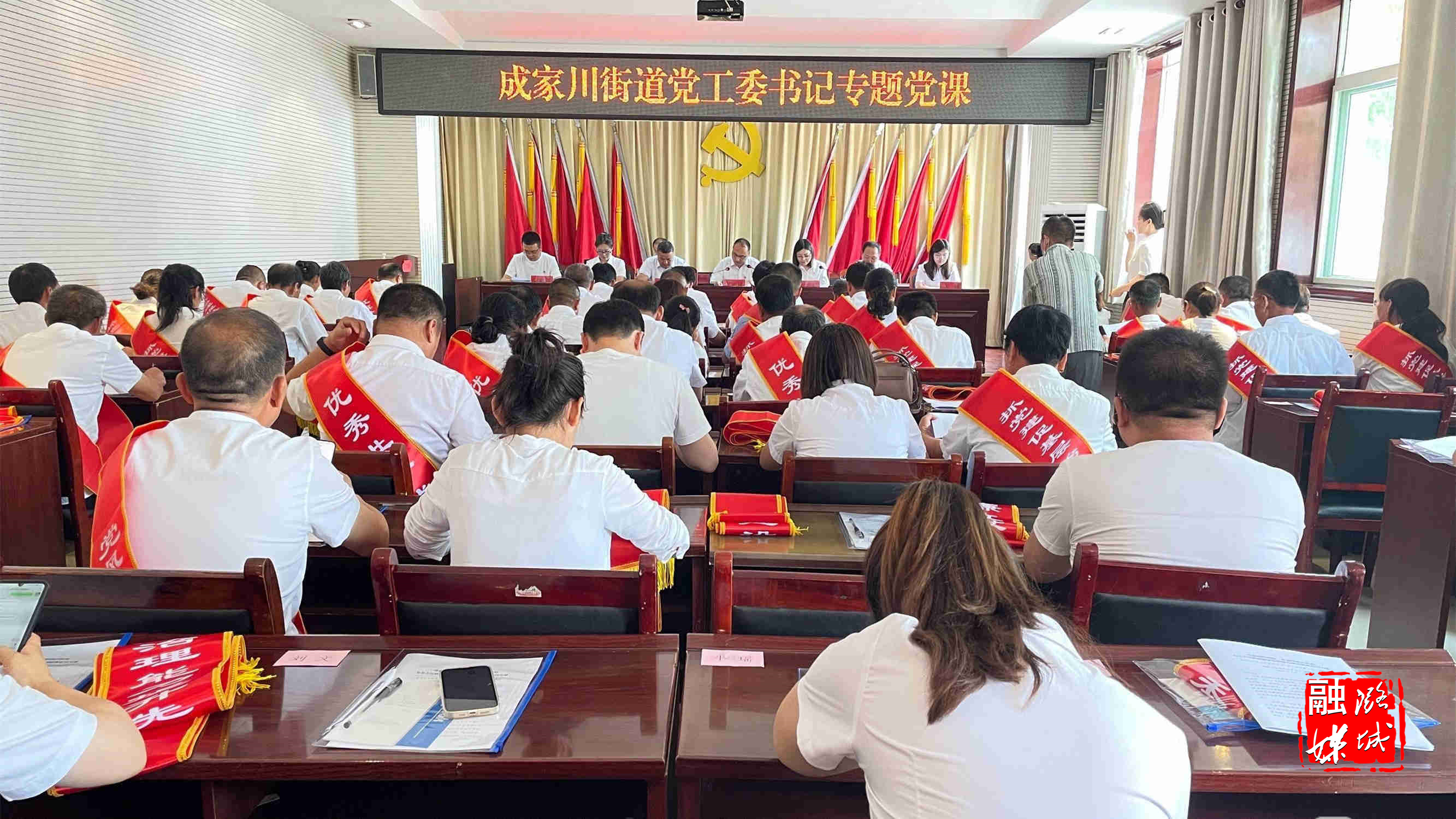 ▲成家川街道负责人主持召开“七一”座谈会,作 “七一”专题党课,对全体党员进行基层治理宣讲。