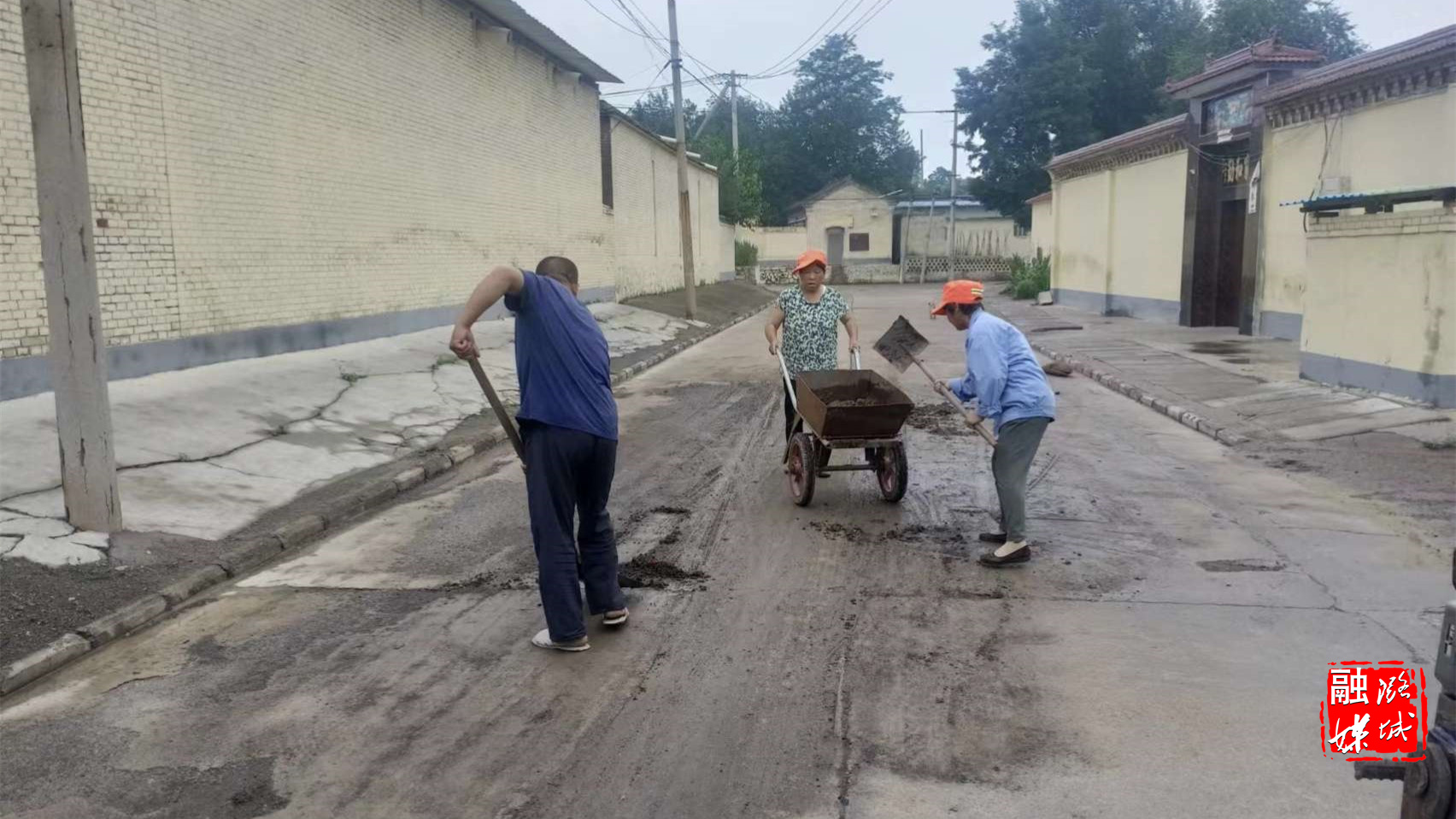 ▲潞华街道新华社区组织工作人员维修破损路面。