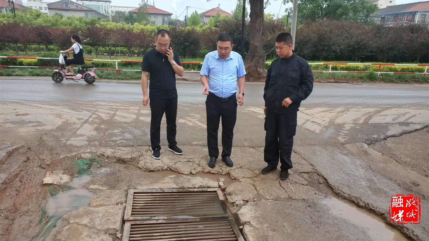 ★7月3日,潞华街道负责人到北街社区督察水网改造工程项目建设情况。