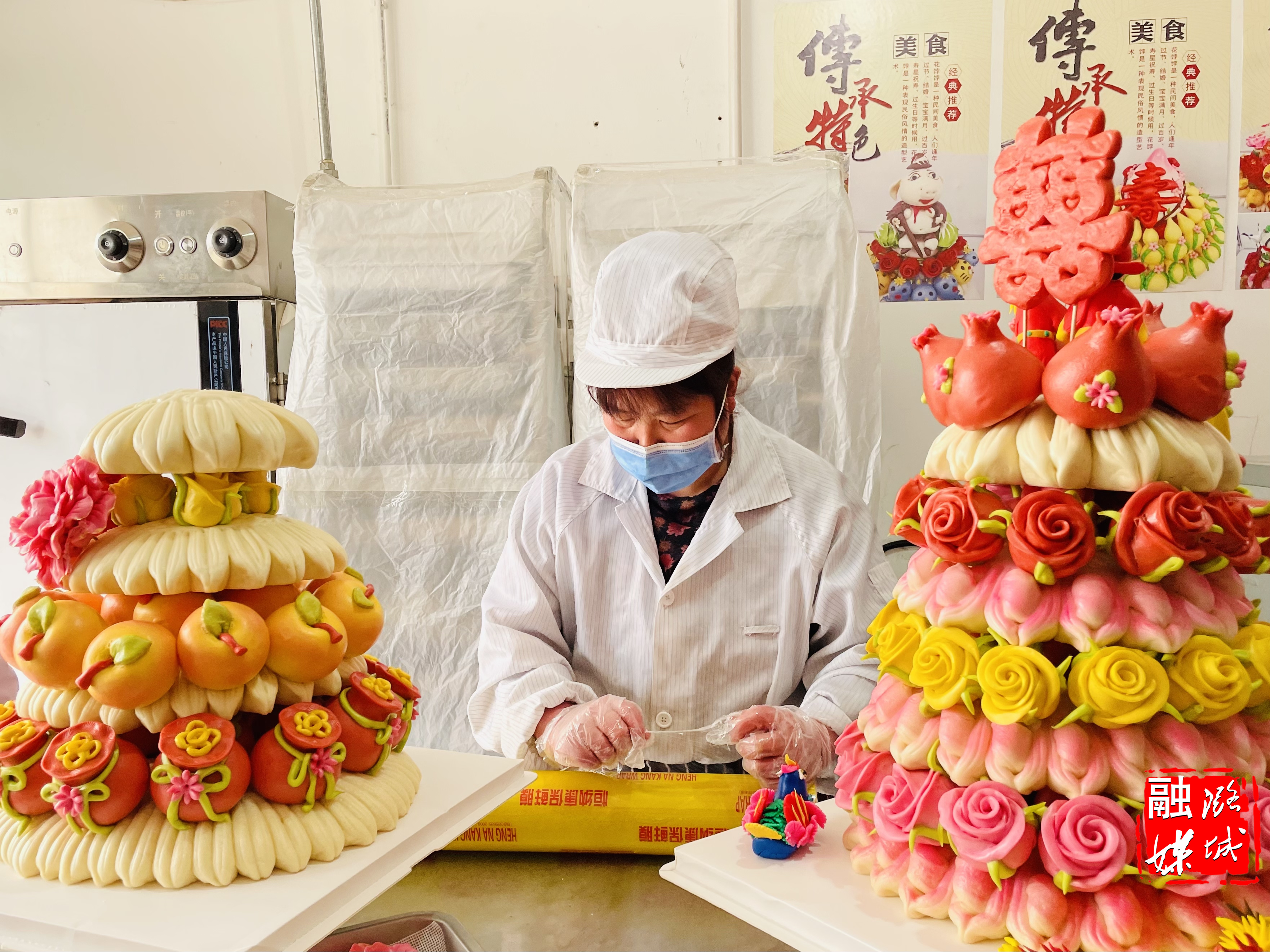 质朴而又饱含深意的祝福带着一份文化与乡情的厚重。看着面前精美别致的花馍,令前来取货的90后顾客赵景芳眼中流露出难以抑制的惊喜之情:“这是给我奶奶庆祝八十大寿定的花馍,我听说咱这边花馍是纯天然绿色的,蔬菜水果打汁,非常健康,而且造型独特,寓意也好,比蛋糕有新意,能让老人沾沾福气,过一个开心的生日。”