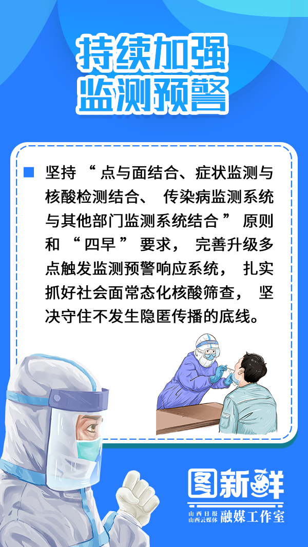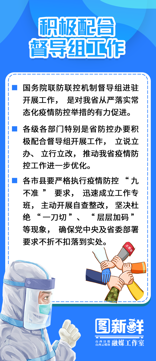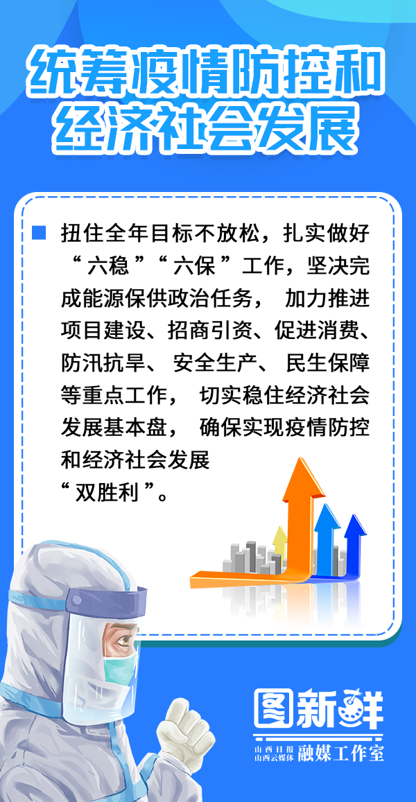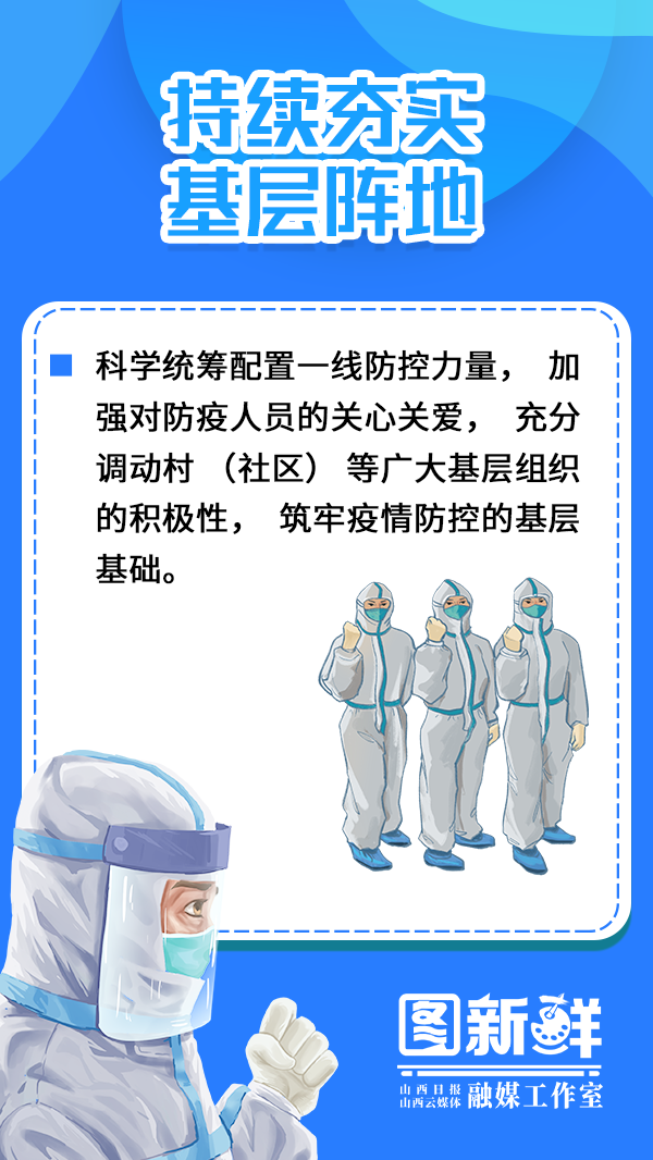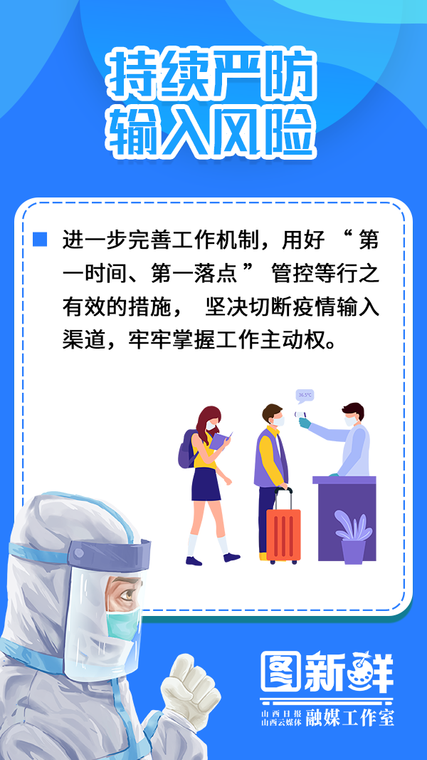 他强调,要切实把思想和行动统一到习近平总书记重要指示精神和党中央决策部署上来,毫不动摇坚持“外防输入、内防反弹”总策略和“动态清零”总方针,按照国务院联防联控机制要求和省委“早、快、准”要求,时刻绷紧疫情防控这根弦,在政治上提高工作摆位、在思想上保持高度警觉、在行动上坚定抓好落实,守好守牢山西阵地,为经济社会发展创造良好环境。