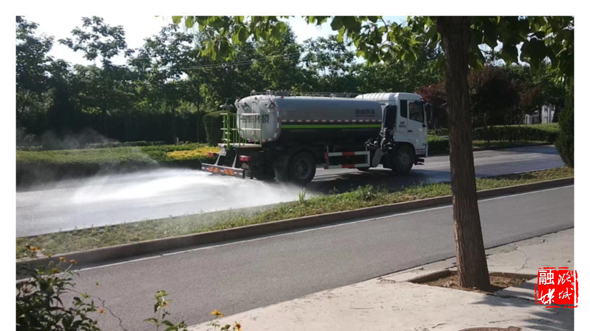 ▲区园林环卫中心对部分路段进行洒水作业,减少道路扬尘污染。