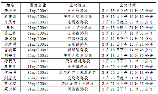 潞城交警大队对以下酒驾、醉驾的违法人员进行曝光,请广大驾驶员牢记“酒后不开车,开车不喝酒”,为家人负责、为自己负责、为社会负责,远离酒驾,珍爱生命。(注:后附处罚名单)
