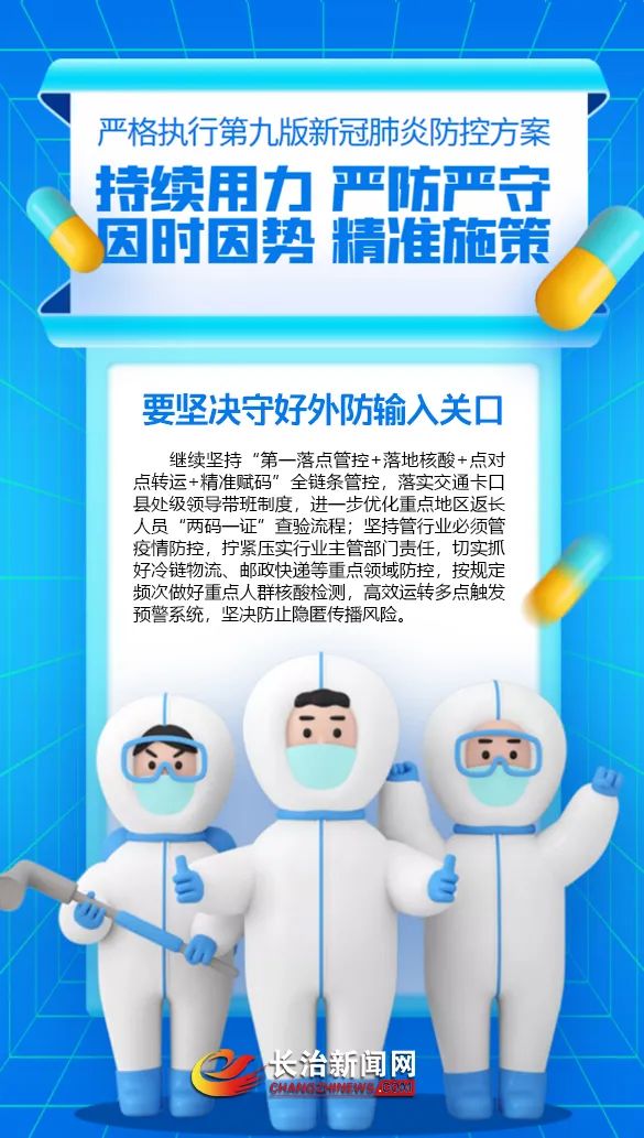 杨勤荣强调,常态化疫情防控是一场任务艰巨繁重的持久战。当前疫情形势总体平稳,但外防输入压力依然很大。各级各部门要保持高度警觉,按照国务院联防联控机制最新要求,严格执行第九版新冠肺炎防控方案,持续用力、严防严守,因时因势、精准施策。
