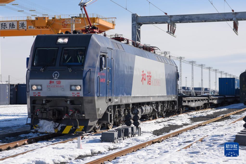在新疆乌鲁木齐,一列中欧班列缓缓驶离中欧班列乌鲁木齐集结中心开往土耳其(2020年2月20日摄)。新华社记者 丁磊 摄