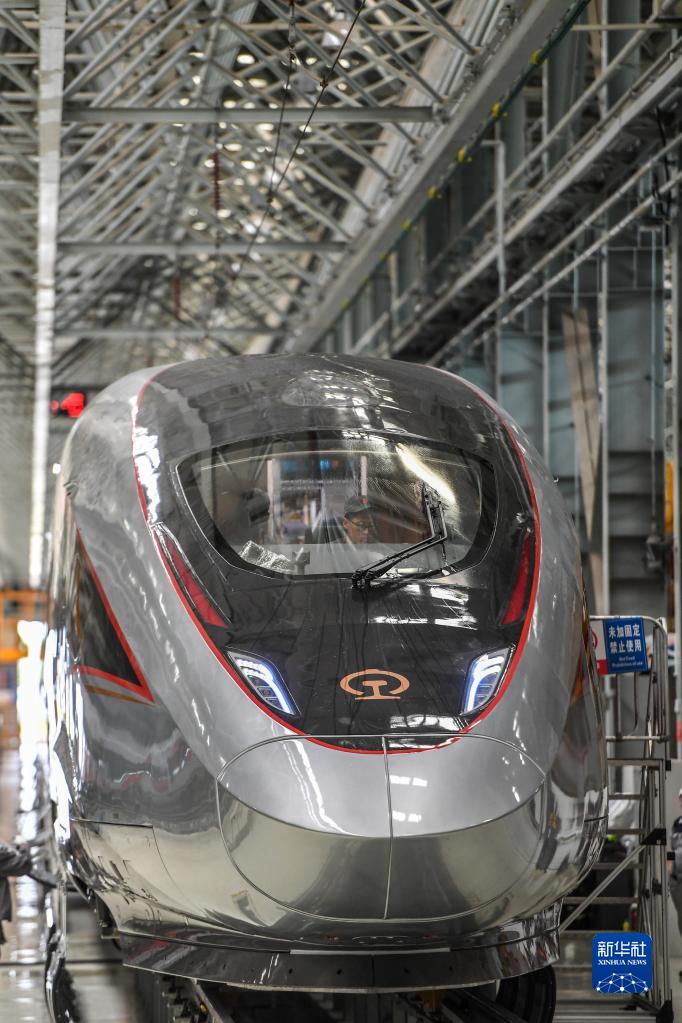 2021年6月15日在中车长客高速动车组制造中心拍摄的复兴号智能动车组。新华社记者 张楠 摄