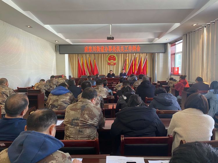 ▲3月22日,成家川街道召开机关工作例会,对科级干部AB岗制度、机关工作制度进行安排部署。
