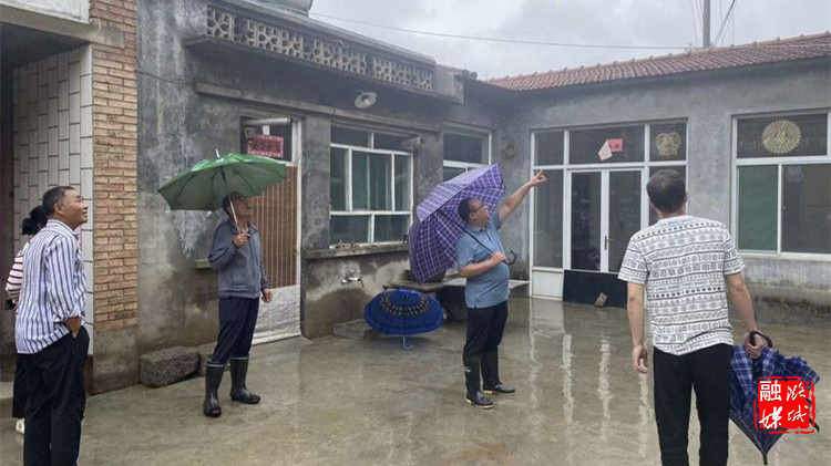▲微子镇相关负责人在冯村检查督导防汛工作。