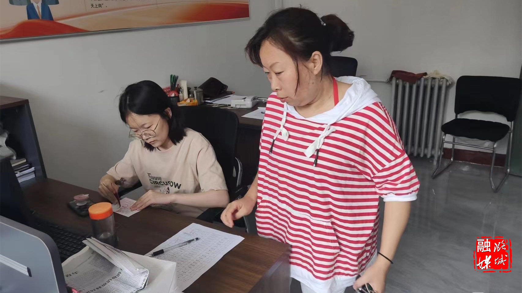 ★7月14日,成家川街道天脊社区工作人员为低保人员发放低保保障证。