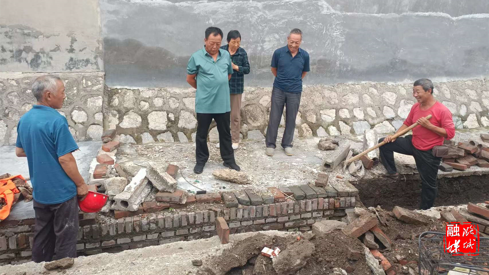 ▲成家川街道各村排查汛期房屋受灾及道路安全隐患情况。