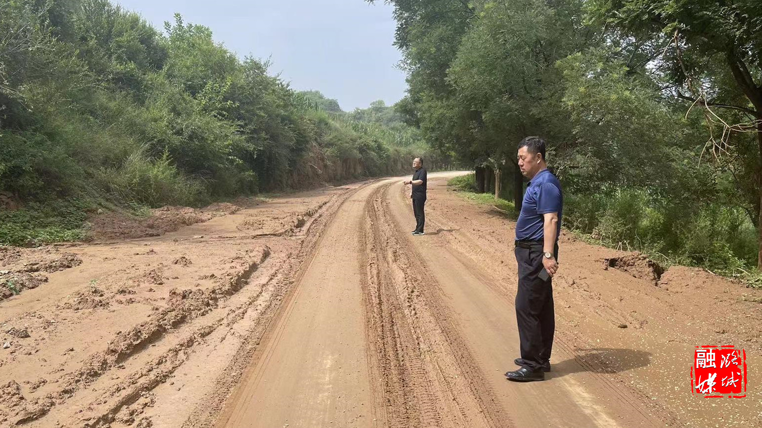 ▲区交通运输局工作人员对道路水毁隐患进行巡查。