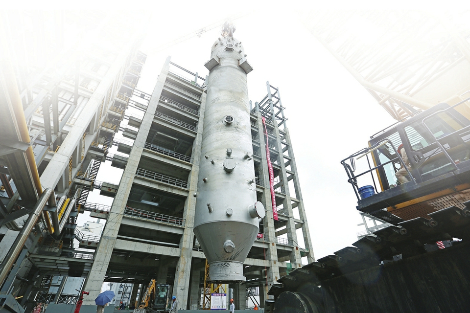 潞安化工机械(集团)有限公司生产的“国之重器”晋华炉3.0吊装现场。晋华炉3.0是山西国有企业为全国能化企业实现减碳增效提供的“山西方案”。本报通讯员摄