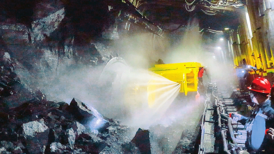 山西焦煤霍尔辛赫煤业矿工们应用综合机械化、智能化采煤设备采煤。本报通讯员摄
