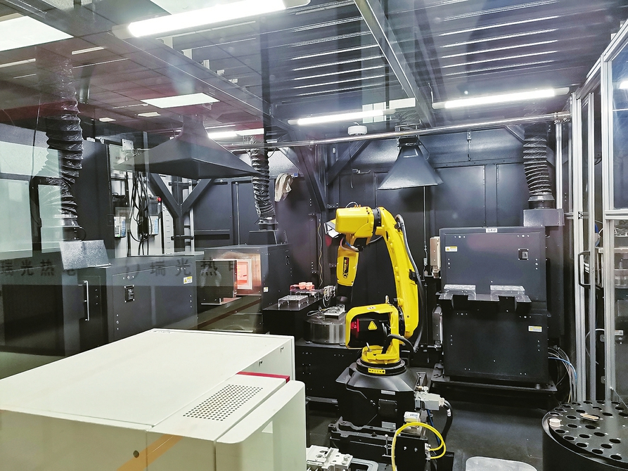 山西国际能源集团(格盟国际)瑞光热电燃料智能化管控中心化验室内,机器人正在对采制煤样进行化验。本报记者刘瑞强摄