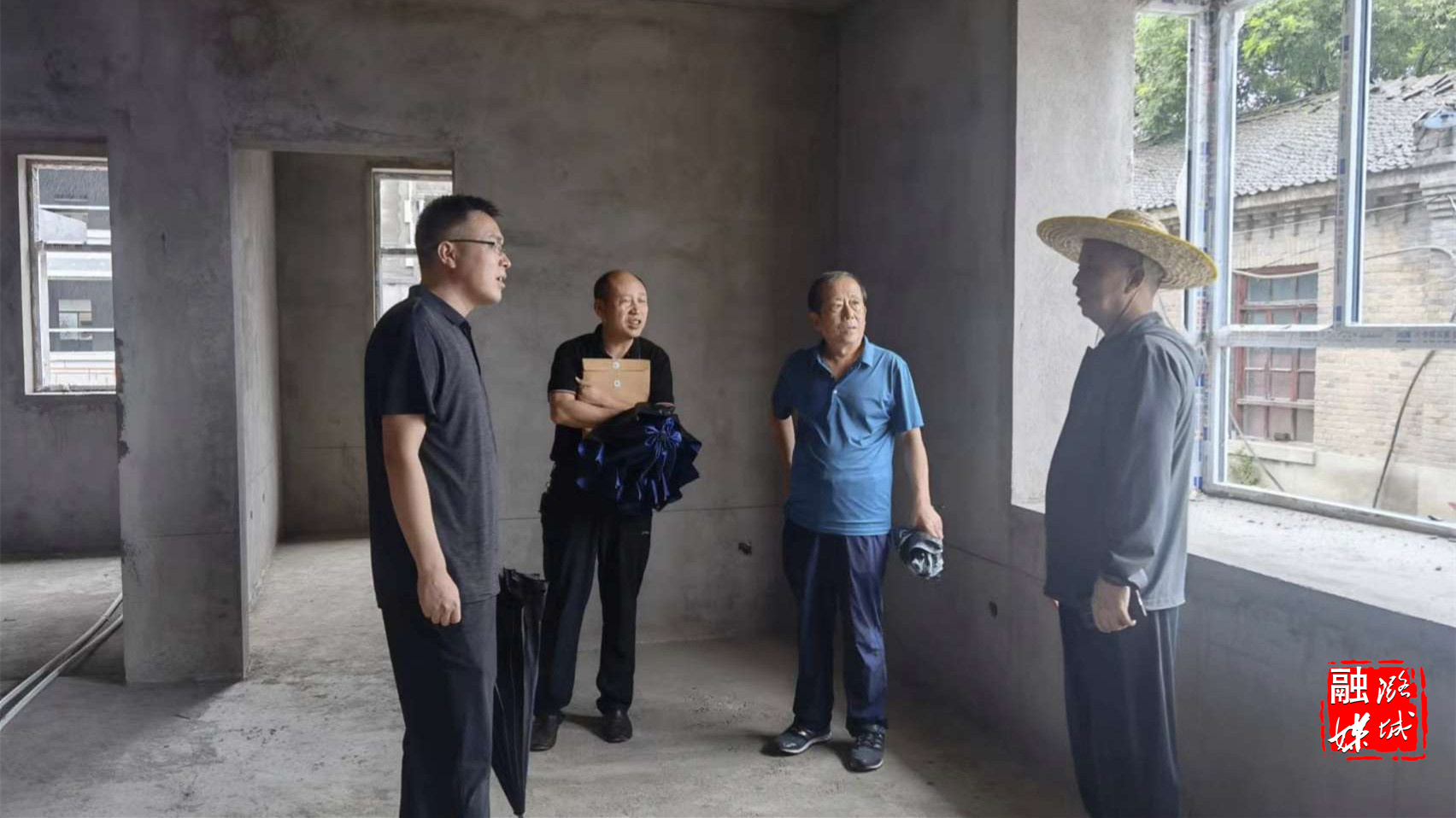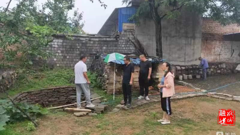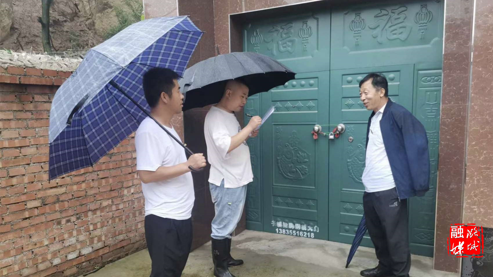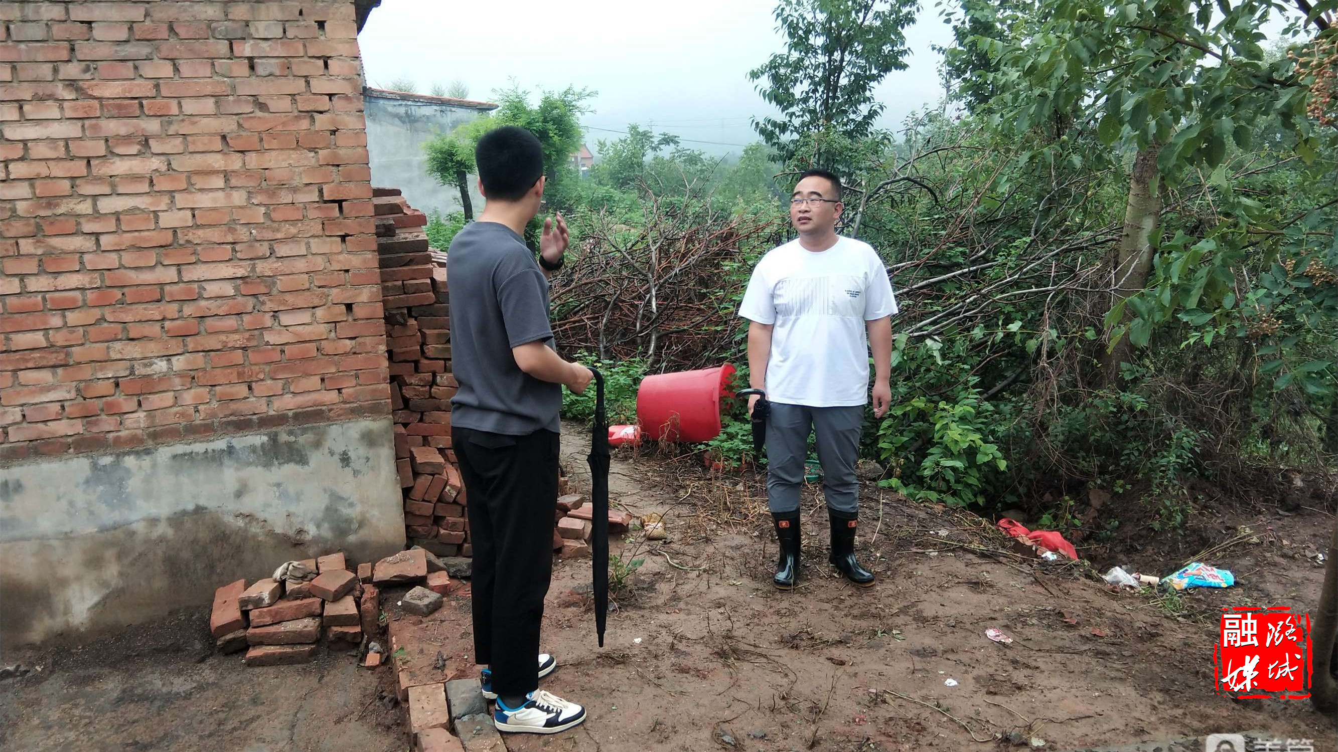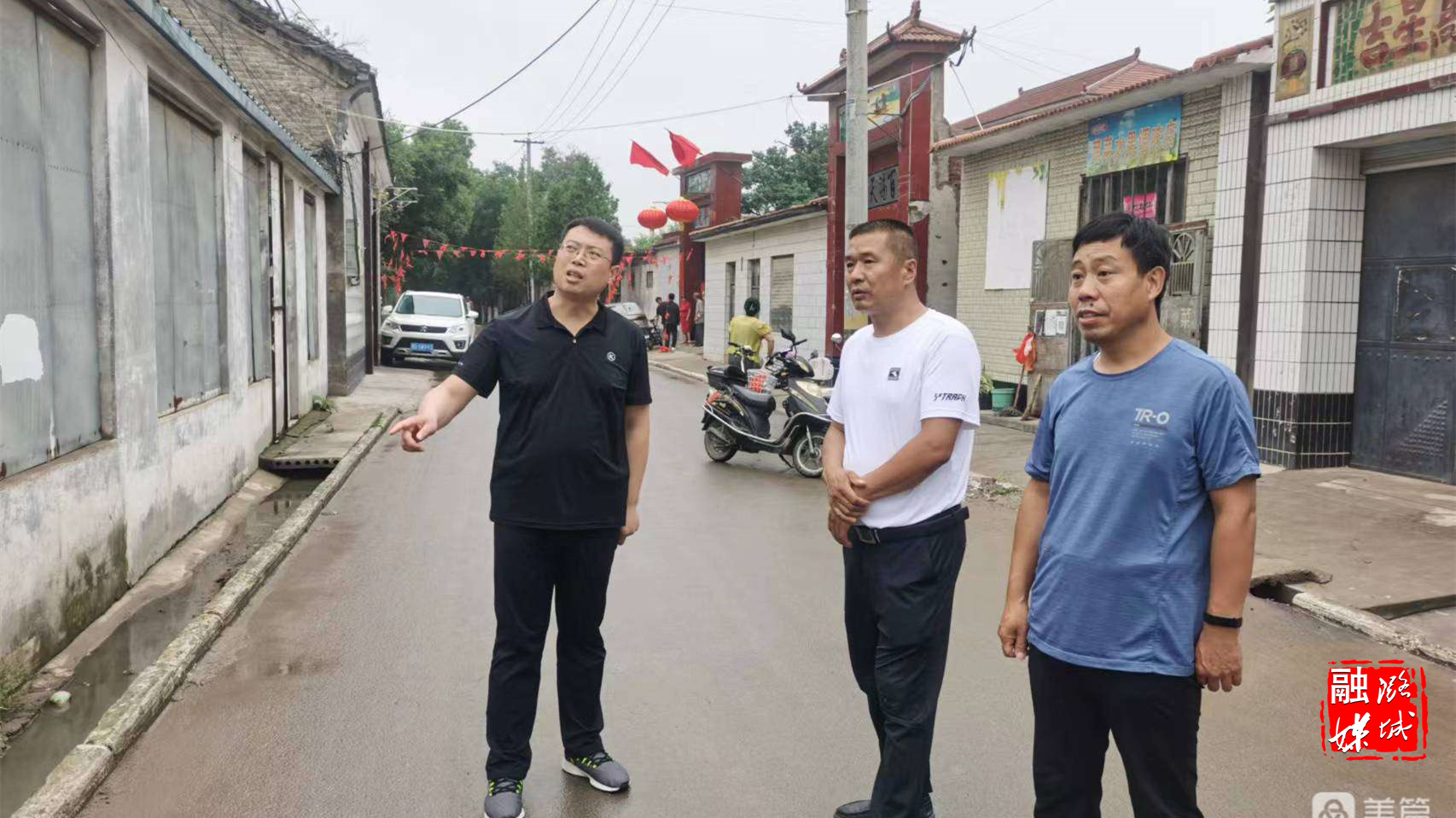 ▲微子镇相关负责人在韩家园村督导落实防汛工作,排查灾情、处置隐患。
