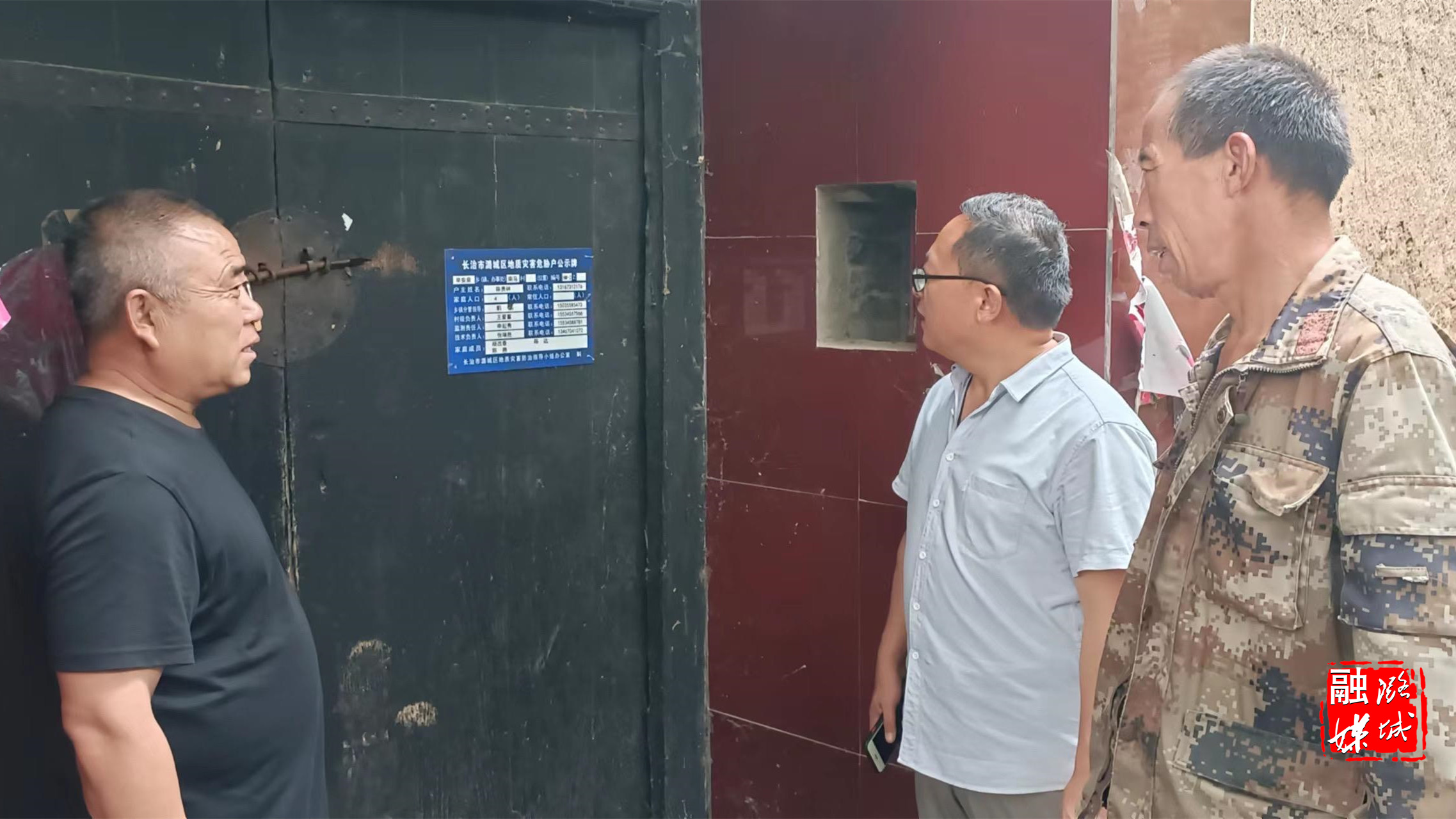 ▲辛安泉镇相关负责人在南马村查看危房户和地灾户转移安置情况。